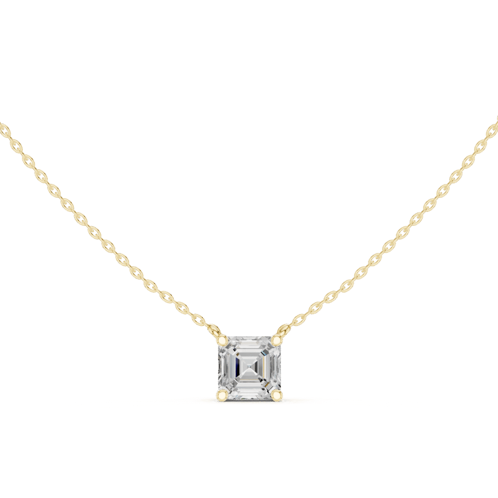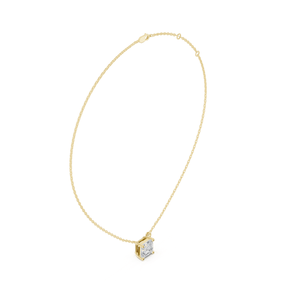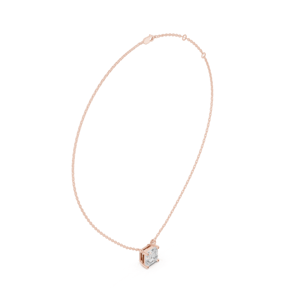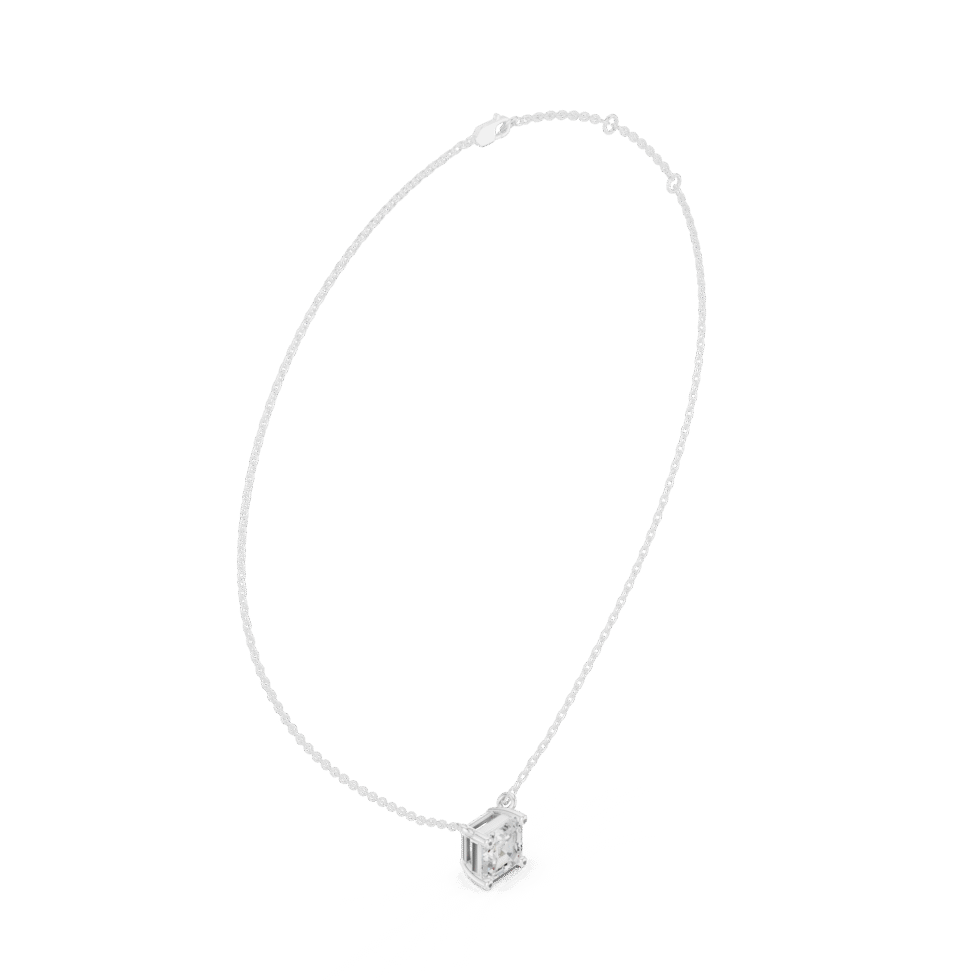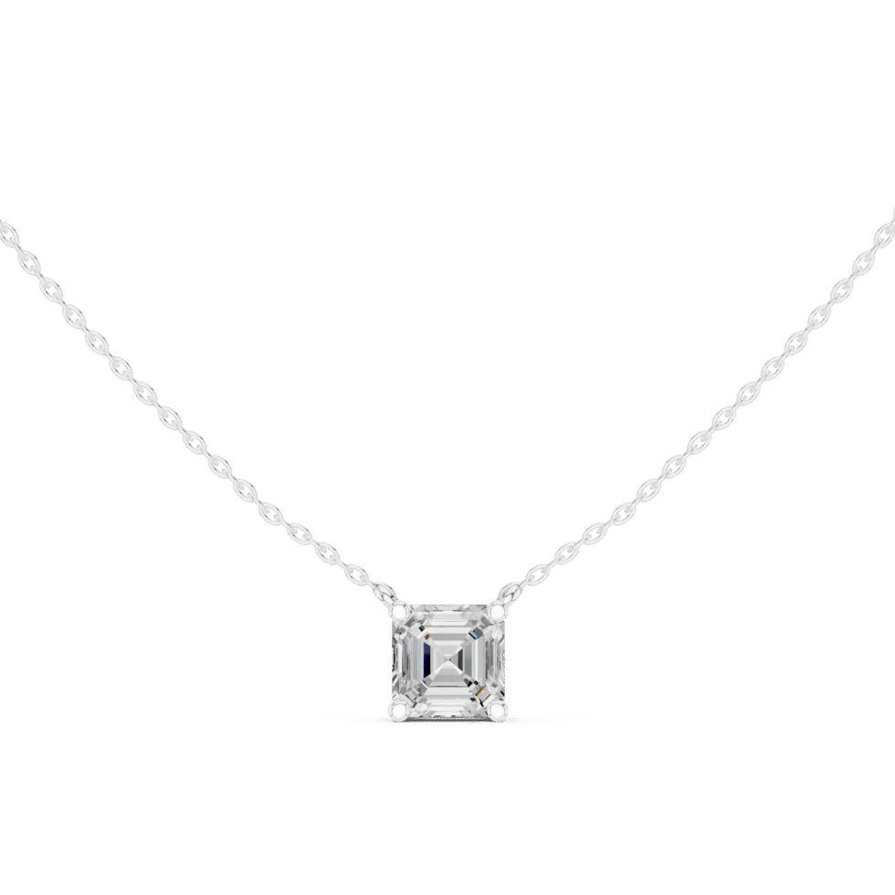 Experience timeless sophistication with our Asscher Solitaire Diamond Pendant, showcasing an extraordinary 2.5-carat Asscher-cut diamond. Known for its mesmerizing hall-of-mirrors effect, the Asscher cut brings unmatched clarity and depth, creating a captivating sparkle that feels both modern and vintage-inspired.